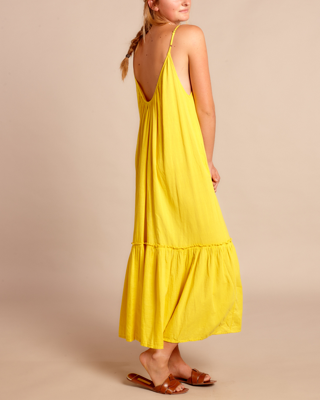Unser Honolulu-Kleid ist in verschiedenen Unifarben für jeden Tag der Woche erhältlich. Dieses lange, weite Kleid besteht aus zwei Lagen feinstem Baumwoll-Voile. Der tiefe Rückenausschnitt verleiht dem Kleid einen sexy und eleganten Look. Die Träger sind verstellbar, sodass Sie die Passform perfekt einstellen können. Es ist ein elegantes Kleid, in dem Sie sich schön fühlen, perfekt für Frühling und Sommer.