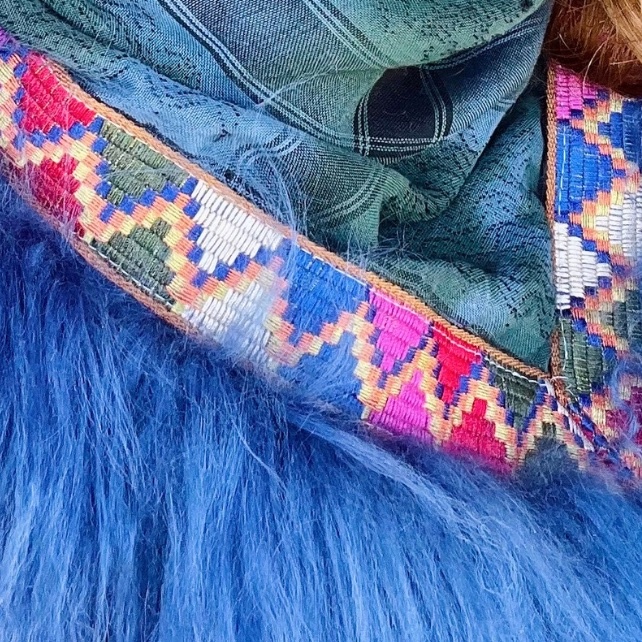 Izuskan scarfs are made of the best quality cotton. The cotton is hand dyed by Izuskan and tie dyed with genuine techniques. After drying in the sun the scarves are abundantly decorated.This scarfs is decorated with 100% certificated tibetlamm. Each scarf has unique colors and designs! The size is 140cm x 140cm.