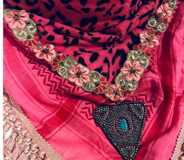 Limited edition unique sari scarf. Handmade with our own printed viscose Leopard sari on top of our original large scarf. All our Izuskan scarfs are hand dyed and designed and made on Ibiza.