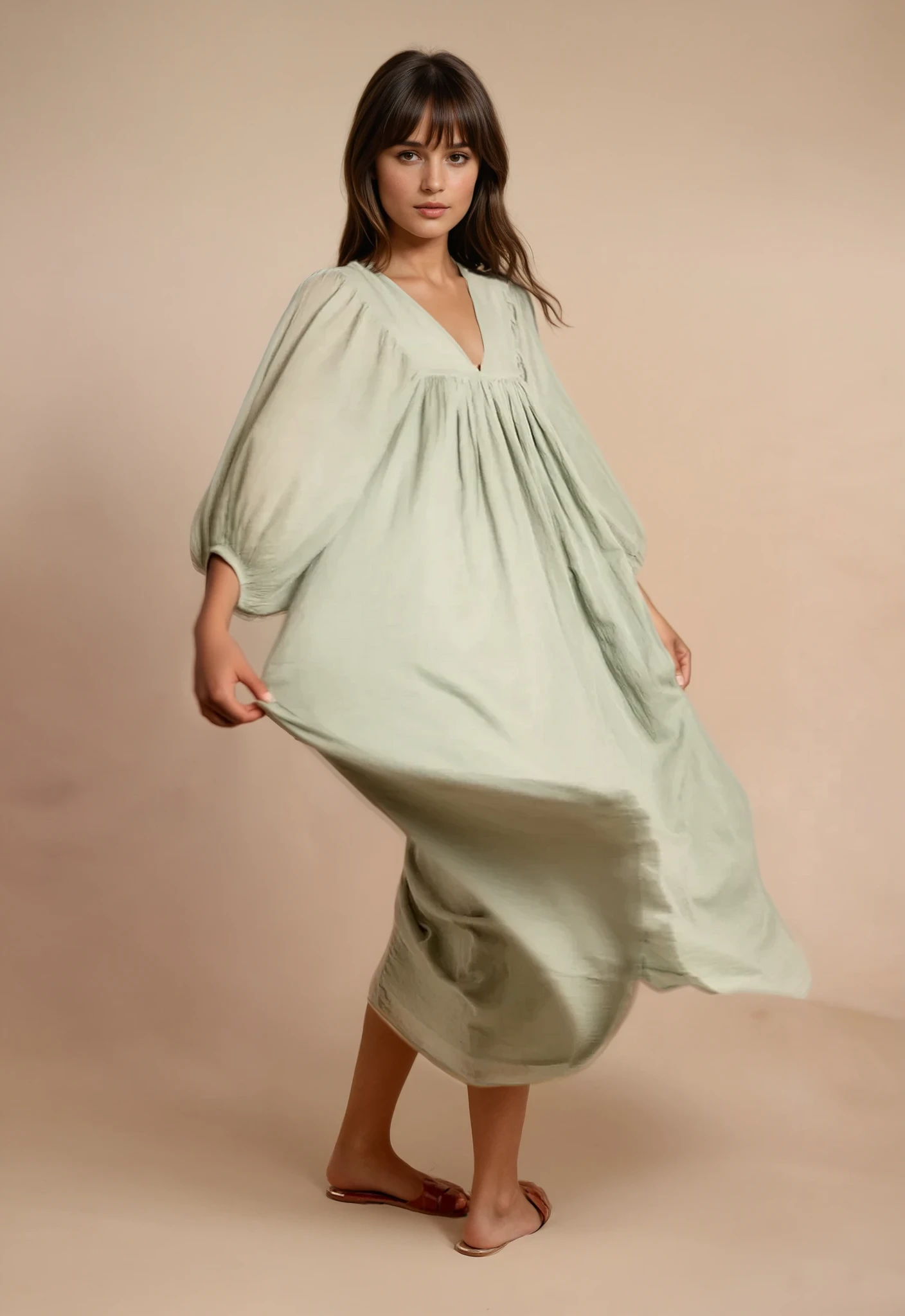 Crafted for all ages and body types, its one-size silhouette flows beautifully, offering comfort without compromising on style. Whether in soft neutral tones, vibrant hues, or custom overdyed shades, the Bondi Dress adapts to your mood and setting.