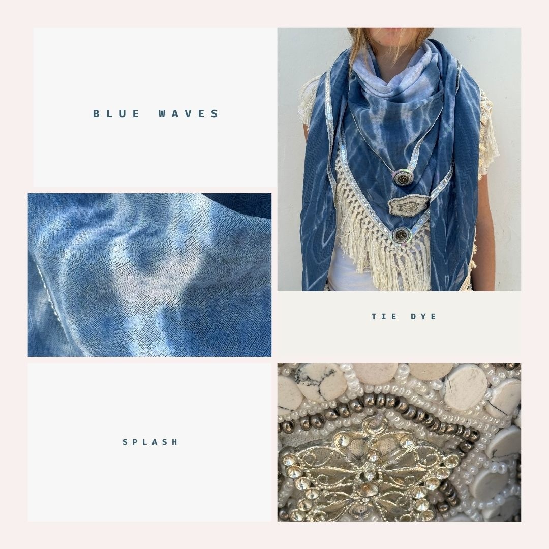 Bufanda única primavera verano de edición limitada inspirada en nuestro mar azul. Cada pieza es única. Todas nuestras bufandas Izuskan están teñidas a mano y diseñadas en Ibiza, así que ten en cuenta que todas las bufandas pueden ser diferentes en tie-dye