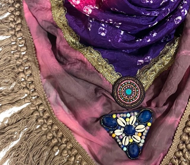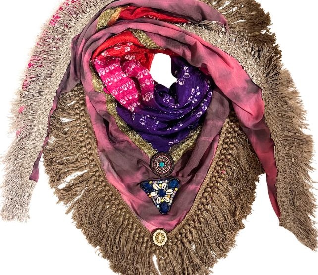 Las bufandas sari de Izuskan están todas hechas a mano en Ibiza. Usamos saris nuevos y antiguos encima de nuestra bufanda básica original tejida y teñida a mano. Nuestro pañuelo sari grande mide 140 x 140 cm. Todas las bufandas están hechas con cuidado, te pedimos que manejes esta pieza única hecha a mano con amor y cuidado. Lave por separado en el programa de lavado a mano de su lavadora y use una bolsa de lavado.