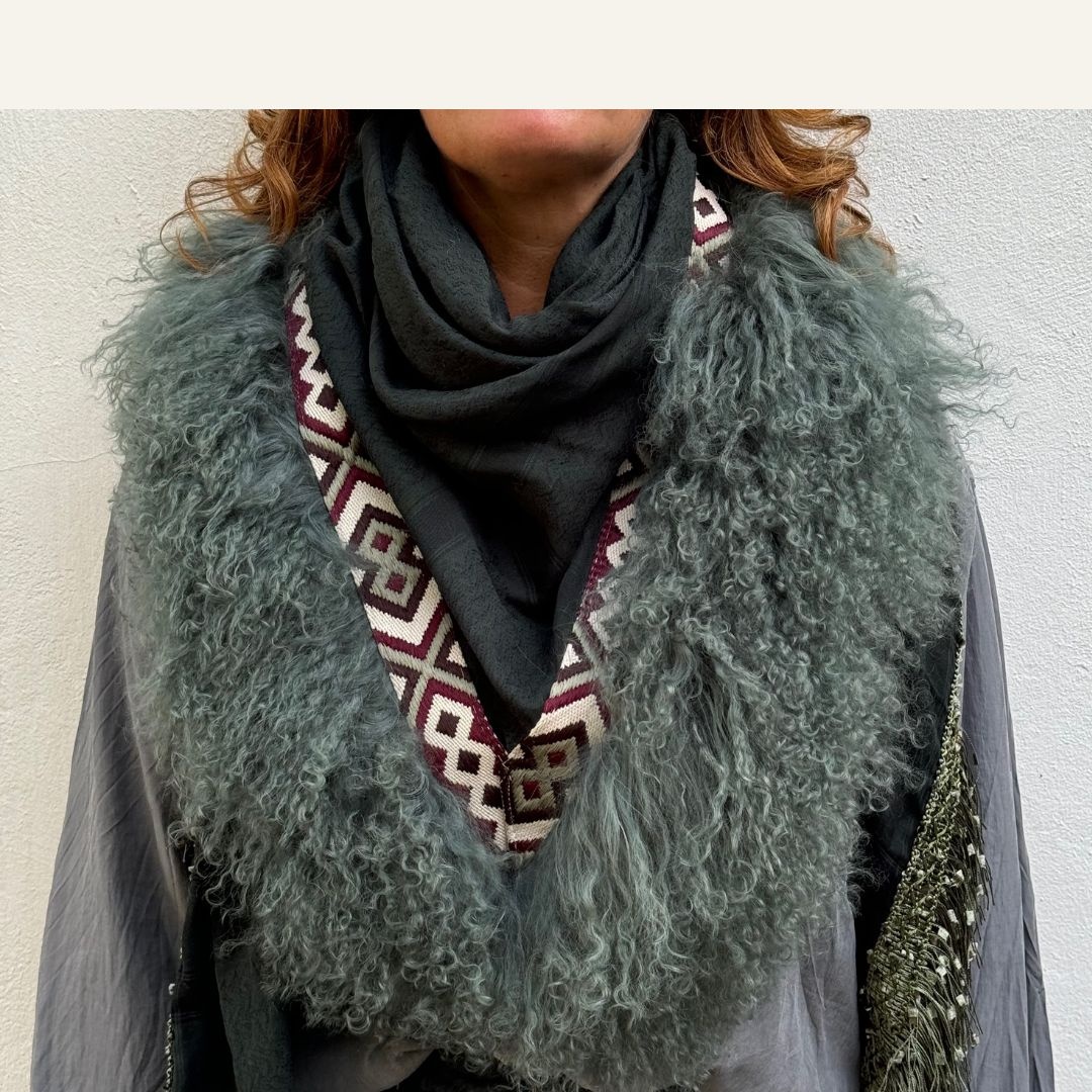 Las bufandas Izuskan están hechas de algodón de la mejor calidad. El algodón está teñido a mano por Izuskan y, en ocasiones, teñido anudado con técnicas especiales. Después de secarse al sol, las bufandas se decoran profusamente con adornos y aplicaciones exclusivos. Estas bufandas están decoradas con tibetlamm 100 % certificado. ¡Las bufandas tienen colores y diseños únicos! El tamaño de esta bufanda es de 140 cm x 140 cm.