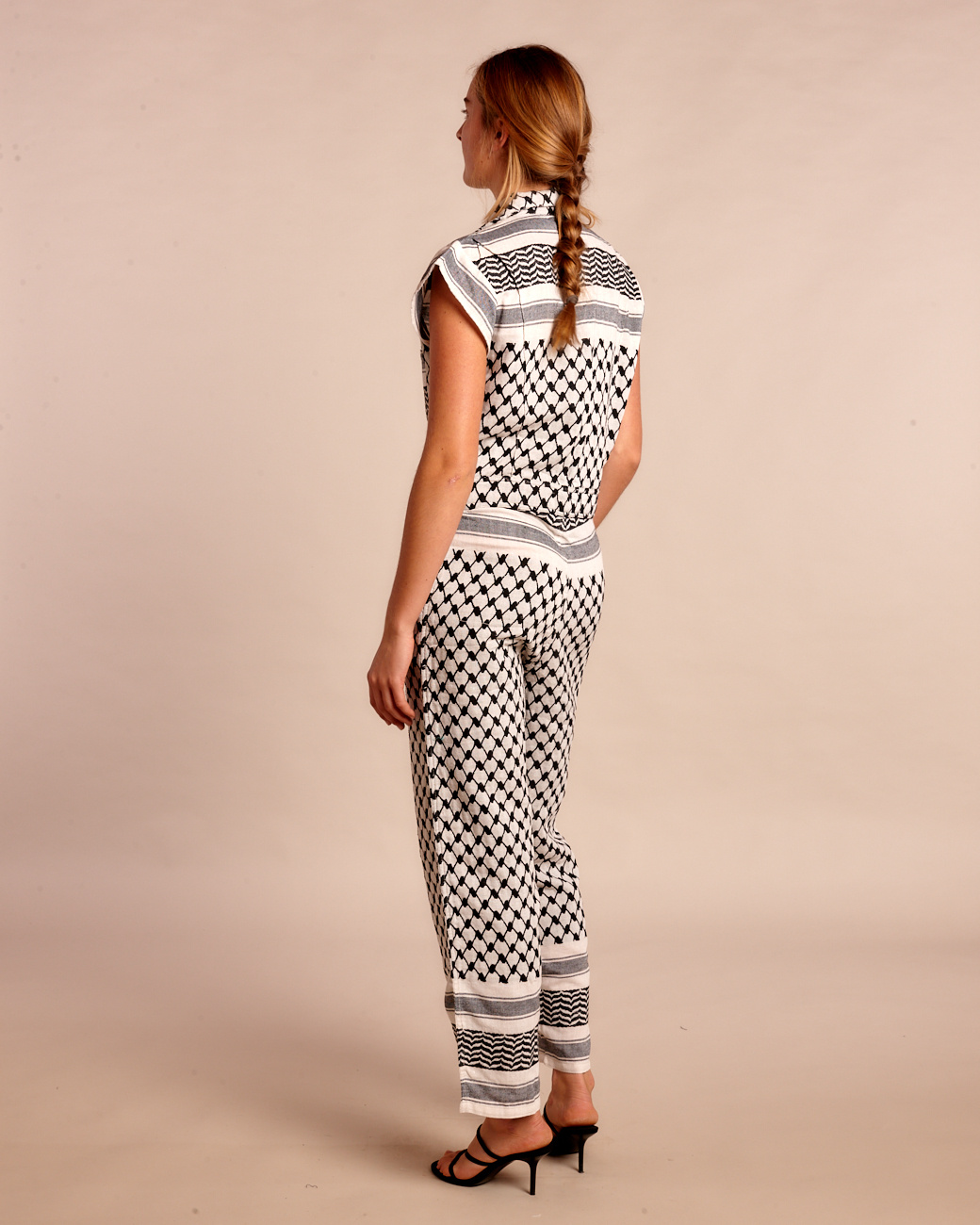 Vestido largo 3/4, confeccionado en diseño bicolor con aberturas laterales y escote en pico. El vestido es sin mangas con flecos al final de la sisa y en el escote. El vestido tiene un cinturón que puedes usar para hacer un bonito acento en la cintura. El vestido es un vestido recto que puedes llevar como vestido de verano o como vestido caftán con botas, mallas y top de manga larga debajo. Conoce nuestro nuevo vestido atemporal en un hermoso algodón irregular. Nuestro modelo mide 174 M y lleva una talla XS/S