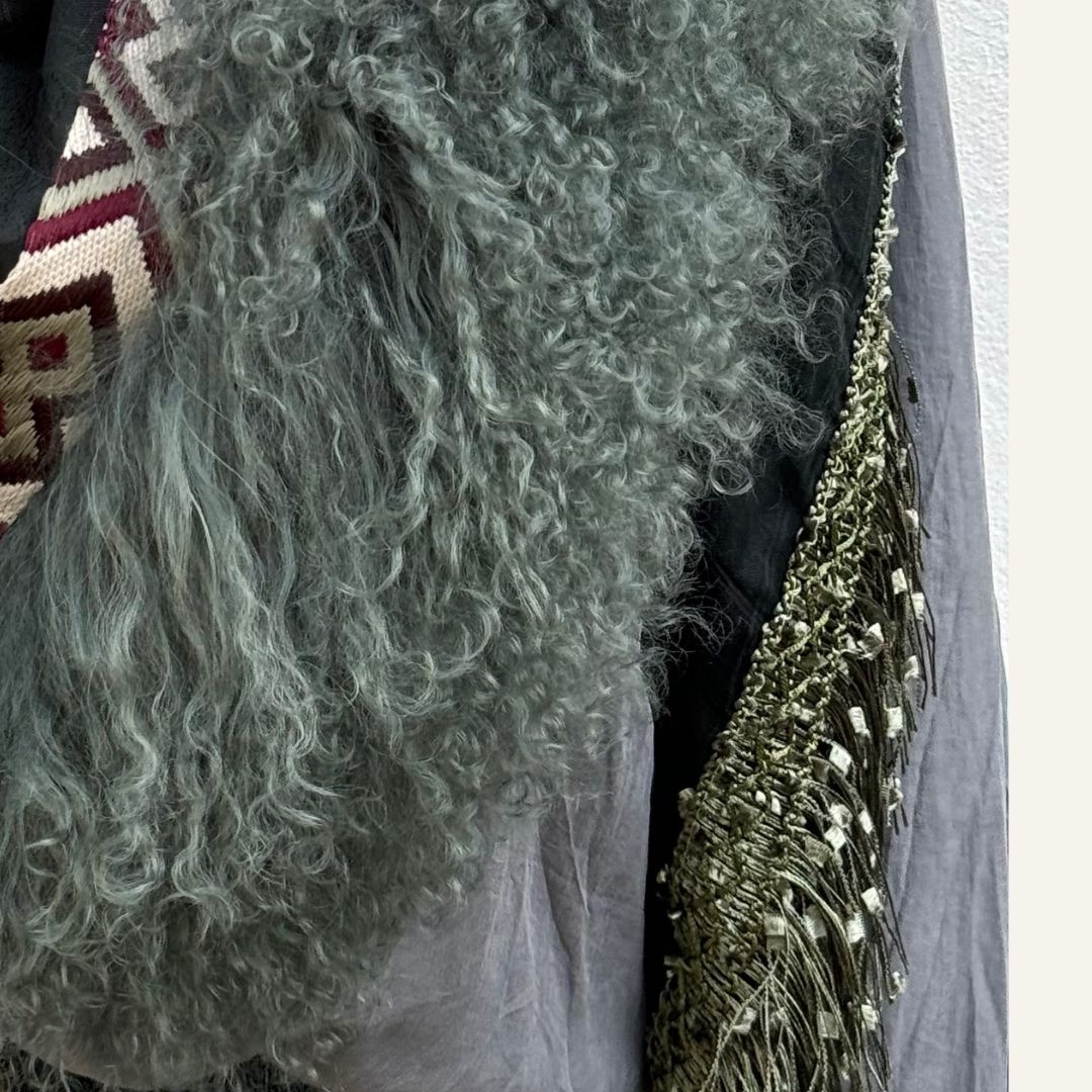 Izuskan sjaals zijn gemaakt van de beste kwaliteit katoen. Het katoen wordt met de hand geverfd door Izuskan en soms tie dyed met speciale technieken. Na het drogen in de zon worden de sjaals rijkelijk versierd met exclusieve versieringen en applicaties. Deze sjaals zijn versierd met 100% gecertificeerd tibetlamm. De sjaals hebben unieke kleuren en designs! De maat van deze sjaal is 140cm x 140 cm.